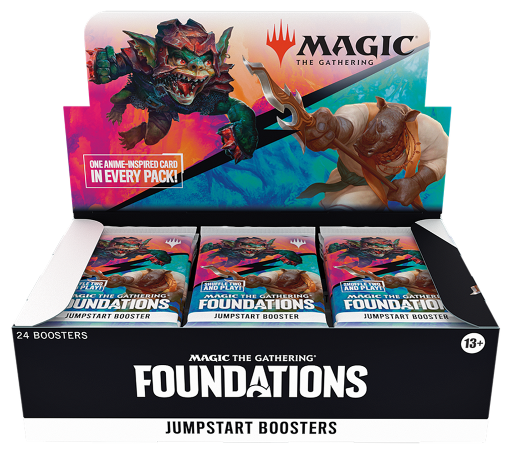 With Jumpstart, playing Magic is a breeze: all two players need to do is crack two packs, shuffle, and they're ready to begin! Whether players are learning the ropes or spell-slinging pros, Foundations Jumpstart brings a fresh wave of fun for everyone at the table. A full display of Jumpstart Boosters supports players who want to explore tons of fun combinations!