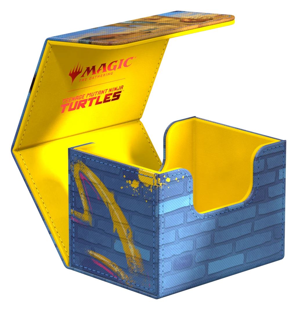 Ultimate Guard's Sidewinder 100+ Xenoskin is a premium Magic: The Gathering deck box offering exceptional card protection with its durable Xenoskin material, microfiber inner lining, and strong magnetic closure—all while providing easy and convenient access to the cards inside. With space for 100 double-sleeved cards in Ultimate Guard sleeves* and printed with officially licensed artwork from the "Magic: The Gathering | Teenage Mutant Ninja Turtles" set, the Sidewinder 100+ Xenoskin is the perfect MTG deck box for all Magic formats (Commander/EDH, Modern, Standard, etc.). Designed to combine with Ultimate Guard's Omnihive, Superhive, and Smarthive mass storage boxes.