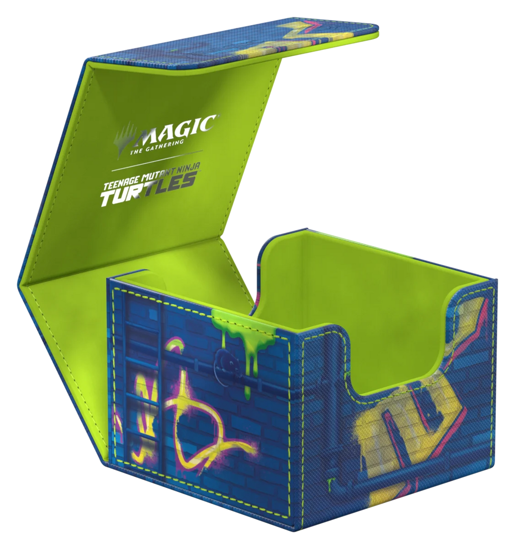 Ultimate Guard's Sidewinder 133+ Xenoskin is a premium Magic: The Gathering deck box offering exceptional card protection with its durable Xenoskin material, microfiber inner lining, and strong magnetic closure—all while providing easy and convenient access to the cards inside. With space for 133 double-sleeved cards in Ultimate Guard sleeves* and printed with officially licensed artwork from the "Magic: The Gathering | Teenage Mutant Ninja Turtles" set, the Sidewinder 133+ Xenoskin is the ideal MTG deck box for Commander/EDH, offering extra space for additional cards and tokens. Designed to combine with Ultimate Guard's Omnihive, Superhive, and Smarthive mass storage boxes.